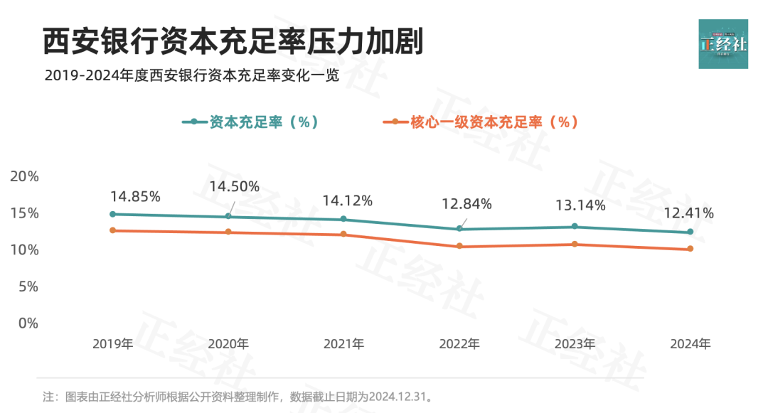 2024年,资本充足率降至12.41%,核心一级资本充足率降至10.07%。