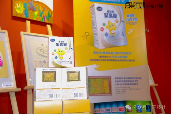 飞鹤与点亮行动公益计划携手推出的公益联名款“聚高星”,盒身印有青年孤独症画家王剑书的画作,让更多的人了解孤独症群体,看到孩子们的才华与潜能。在本次活动中,每卖出1盒聚高星公益艺术限定装,飞鹤就将拿出1元作为公益善款,定向捐赠给中国志愿服务基金会点亮行动公益计划,推动孩子们在教育、生活等方面的改善。